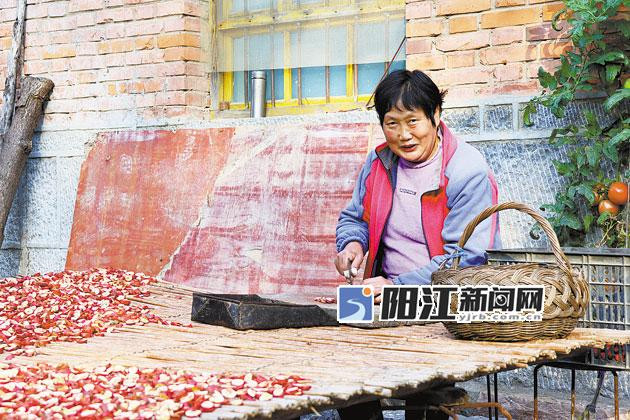 村里很安静,只有几位老人坐在屋檐下晒太阳,顺道切山楂,娇艳的山楂从他们苍老的手指间滑下,落入筐中,发出沙沙声。“现在娃子们觉得干这个没啥出息喽,嫌危险,又辛苦,赚钱少,跑到城里打工了。”秦大娘语气中带着些许遗憾,“村里还在坚持晒秋的,不超过10户人家了,我们老两口也不知道还能做多久。”