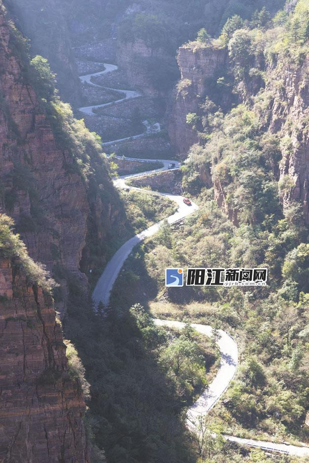 眼前的香木河十八拐,号称太行山最惊险公路,高200米,长300米,掩映在1646米的蚂蚁山葱郁的陡坡中,看不到路向。驾驶者须握紧方向盘,死盯前方,每一拐短的不足10米,长的不到30米,两拐之间弧度不足15度,往往刚急把方向盘打尽,车身摆直,却又要马上全力将方向盘向相反方向猛打到底,而油门需松紧适中,既担心太快撞山崖,又害怕马力不够倒退。走完一道又一道拐,似乎无穷无尽。直到手心湿透,左上角出现平行公路,才长长地嘘了一口气。从崖壁回看,香木河十八拐宛若一条在夹缝中艰难爬升的游蛇,身体异常扭曲。