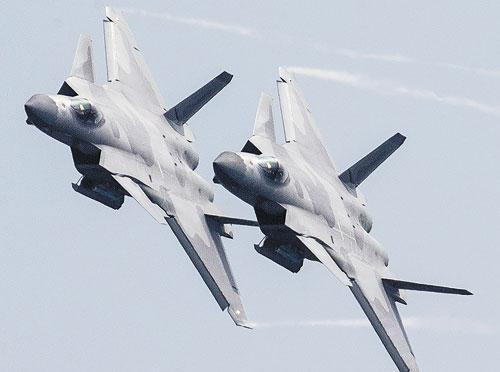 全新涂装的歼-20战机,在第十二届中国航展上进行了约8分钟的飞行展示。 新华社发
