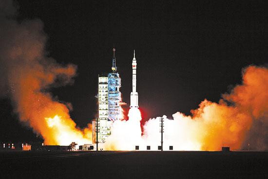 搭载神舟二十一号载人飞船的长征二号F遥二十一运载火箭在酒泉卫星发射中心点火发射。 新华社发