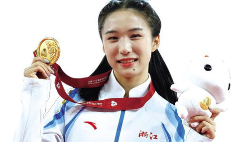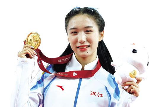 冠军浙江队选手陈妤颉在颁奖仪式上。 新华社发