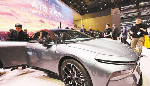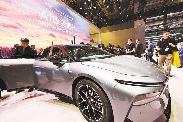 参观者在第二十一届上海国际汽车工业展览会小鹏汽车展台上的一辆G7汽车旁驻足观看。汽车产销量双双突破3400万辆,新能源汽车产销量均超1600万辆,国内新车销量中新能源汽车占比超过一半——打开新出炉的2