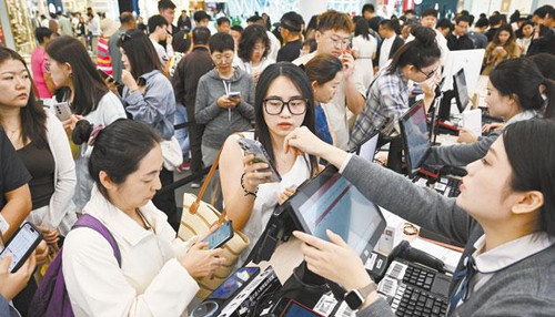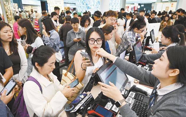 离岛免税购物热潮再度升温。在三亚国际免税城,消费者穿梭于各品牌专柜,挑选心仪商品。“价格合适,款式也新颖。”北京游客李女士选中一台数码相机,相机享受离岛免税和店里的促销折扣,比在北京购买省了近千元。