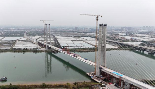 深江铁路广中江特大桥跨鸡鸦水道主桥顺利合龙