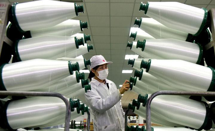 工人在位于河南林州的光远新材料股份有限公司电子布生产车间进行原丝巡检(2025年3月19日摄)。新华社记者 朱祥 摄