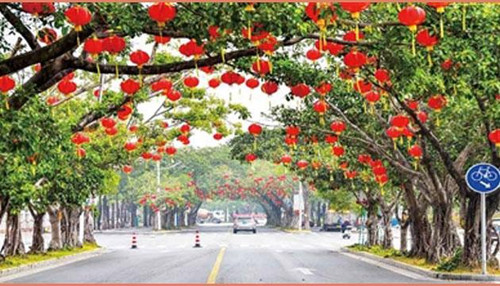 2月9日,离春节还有7天,市区的大街小巷年味加载100%。老街的骑楼、公园的林木、近郊的乡村……皆装扮一新。有街坊表示,家门口的道路“美得快不认识了”。