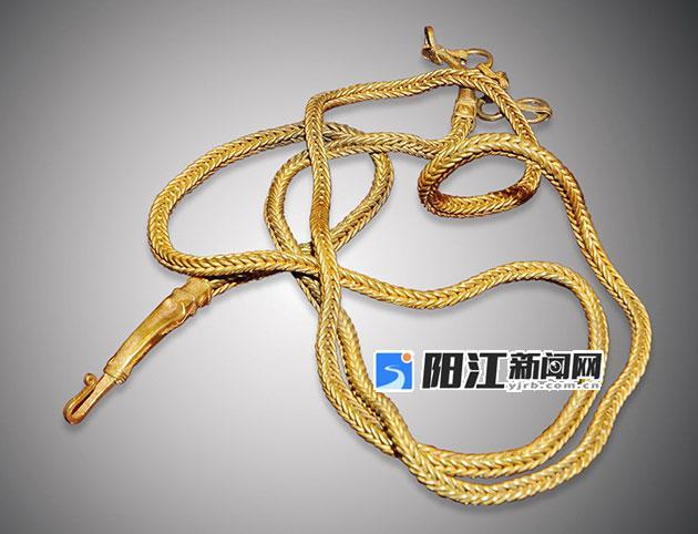 金器是“南海Ⅰ号”出水文物中最惹眼、最气派的一类。其中,鎏金腰带长1.8米,鎏金手镯口径大过饭碗,粗过大拇指。嵌有各种宝石的纯金牌饰、戒指、镂空胸佩等,工艺精湛、造型精美、带有浓郁的中西亚异域风格。这些金饰品与中国传统饰品风格迥异,反映出古代中国与外国在科技、审美领域的文化差异与交融,展现了古代海上丝绸之路的繁华。