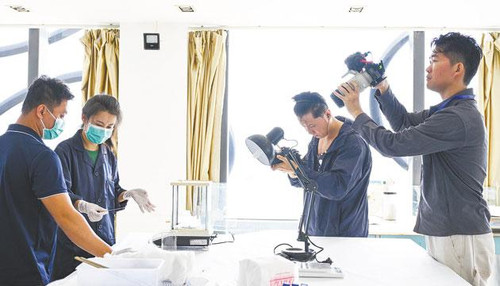 央视摄制组在广东海丝馆拍摄南海I号相关人物、文物及科研等内容。 梁文栋 摄