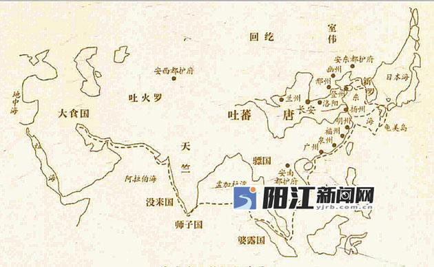 唐代海上丝绸之路图,阳江刚好在航线所经之处(资料图片)