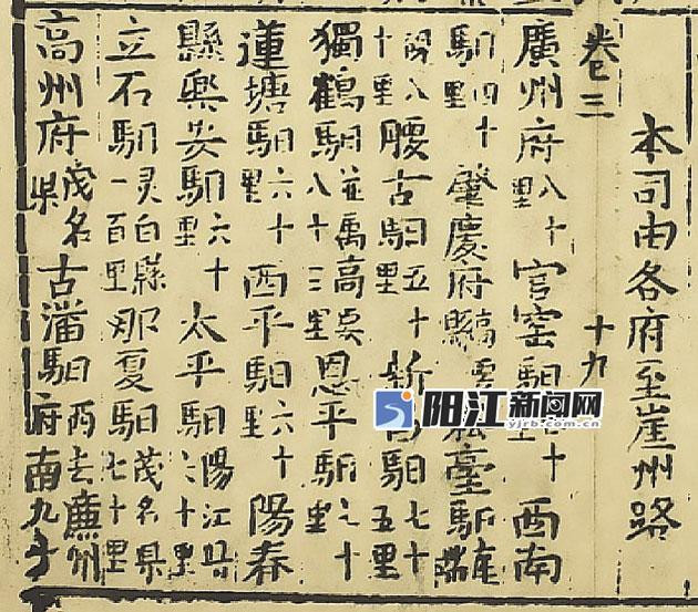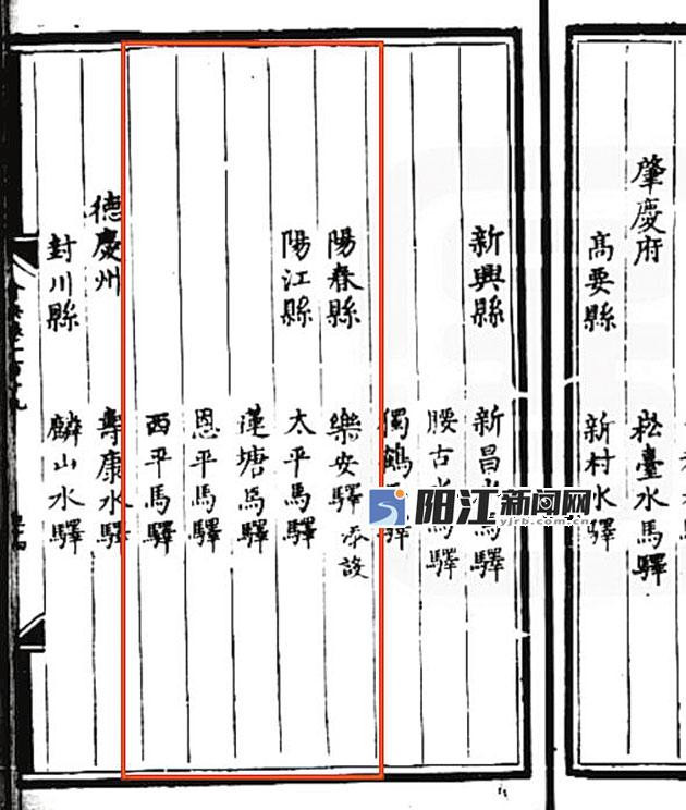 《大明会典》(明正德四年[1509])之阳江地区驿站设置情况