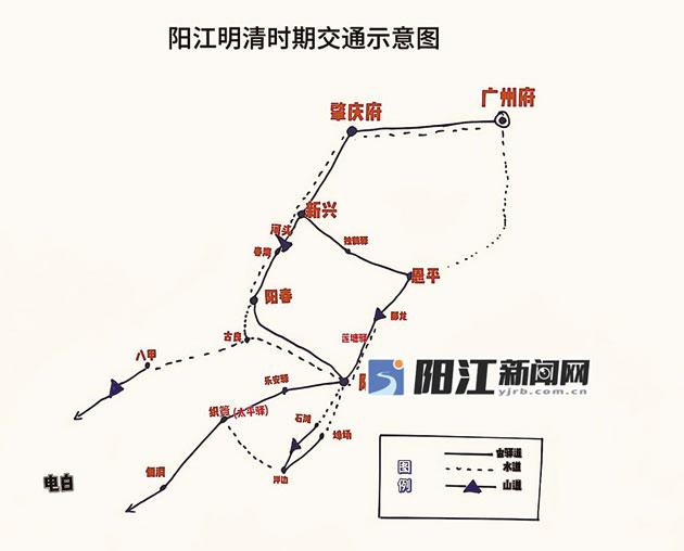 阳江居粤西要冲,自古以来是广州往高雷廉琼的必经之路,沉淀了不下千年的交通记忆。道路更迭与王朝兴替、政局变幻分不开。明代因为边患,以“新兴—恩平—阳江”为官道,清代又因战乱改为“新兴—阳春—阳江”官道,民国时期又以水路捷径补充公路之不足。驿道远远超越了交通载体的意义,它承载着政治、经济、文化的脉络,也见证着岭南与中原文明的交响。
