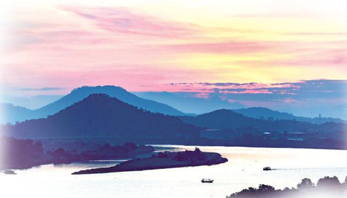 朝霞映照那龙河,青山隐隐水迢迢。 冯绍安 摄