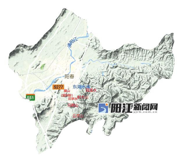阳春射木诸山位置图。(邱锦清根据清同治《广东图说》、民国《阳春县志》标注)