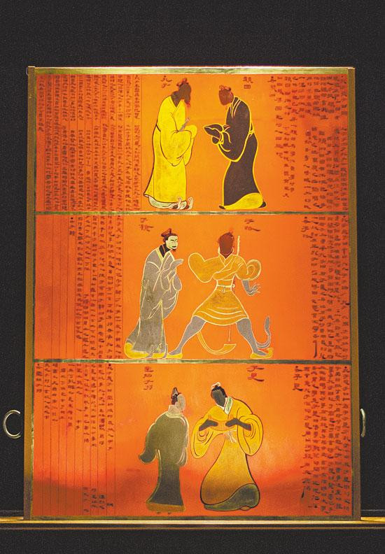 南昌汉代海昏侯国遗址博物馆展出的孔子衣镜(复制品)。 袁慧晶 摄