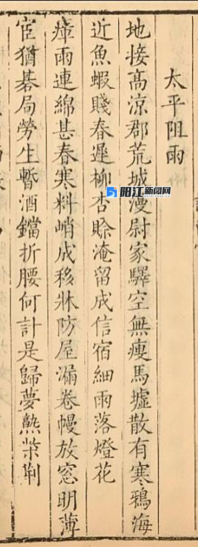 其中,东路驿道由恩平入阳江,经过莲塘、那龙等处;西路驿道自阳江城抵电白,途经乐安、太平两驿站,古人行迹赋诗,皆成史证。今辑录考释,以见阳江驿道之人文气象与诗韵流芳。