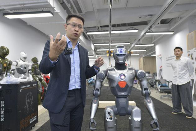 10月29日,在广东深圳,众擎机器人科技联合创始人姚淇元介绍机器人“小众”。 刘力航 摄