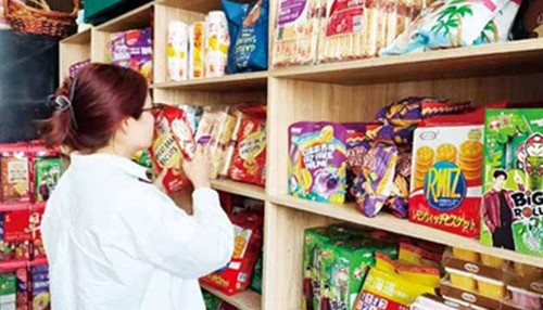随着消费升级,一些精品水果店开始搭配售卖较为昂贵的进口零食吸引顾客。