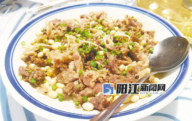 提前泡发饱满的黄豆吸足了牛肉的鲜美汤汁,绵密入味;火候恰到好处的牛肉软嫩滑润、实而不柴。鲜嫩的牛肉、甘甜粉绵的黄豆,再裹着生抽、蚝油的酱香,每一口都是难以抗拒的独特美味!就连盘底的汤汁也不想放过,拌上米饭嗦个干净,营养美味又满足。