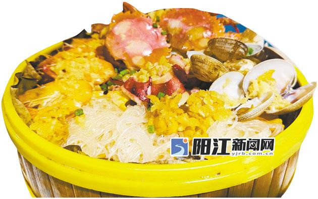 荷叶蒸海鲜可谓“海洋聚宝盘”,一个蒸笼“一统江湖”!“鲜”“美”是这道蒸品的特色,掀开锅盖的瞬间,搭配多彩的颜色、发亮的油光以及那扑面而来的夹着荷香的鲜香味,总是让人垂涎欲滴!入口品尝,蒜蓉的香、海鲜的鲜甜交融得恰到好处,虾肉弹牙,蟹肉滑嫩,鲜鱿脆爽……就连笼底的粉丝,也因吸收了多种海鲜的汤汁与荷叶的清香,特别丝滑鲜香!