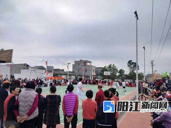 村里的男女老少都来看篮球比赛。