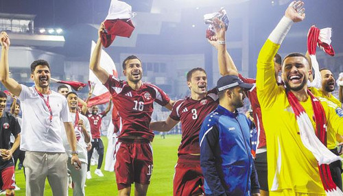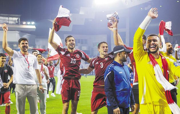 10月14日,卡塔尔队球员在比赛后庆祝。