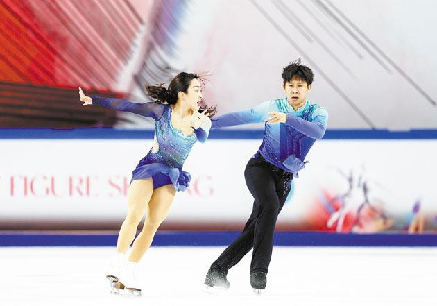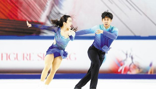 隋文静(左)/韩聪在自由滑比赛中。 新华社发