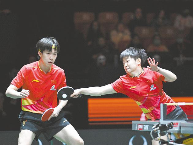 中国队组合王楚钦/孙颖莎(右)在混双比赛中。 新华社发