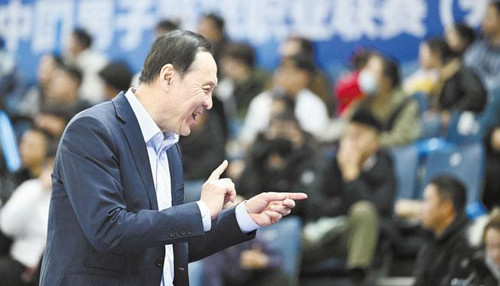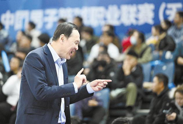 1月14日,天津先行者队主教练张德贵在场边。