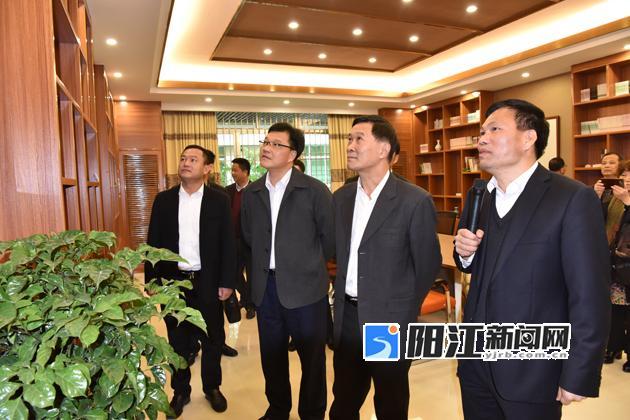 市政协副主席、阳春市委书记陈平(右二),阳春市市长罗汉杰(左二)到阳春一中调研。 植兰裕 摄