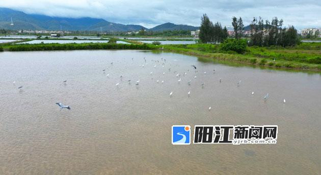近日,记者在阳西县溪头镇看到:群鸟在湿地上空飞舞,构成一幅动人生态画卷。