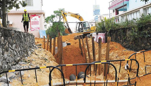 在海滨新村小区,记者看到出入口设置了围蔽,工人们正在对雨污管道进行填埋。海滨新村商业店铺比较多,施工期间对部分路段进行半封闭,尽量减少对居民住户和商户的影响。目前,小区雨污管网分流改造进度过半,已铺设各类管网约6520米,正在同步进行道路与巷道硬底化。