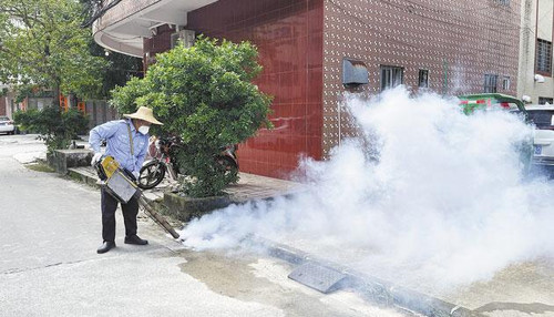 走进阳江滨海新区(阳江高新区)大街小巷,专业蚊媒消杀机构携带超低容滞留喷雾器、常量喷雾器、热烟雾枪等消杀工具,对全区重点区域进行了全面消杀。