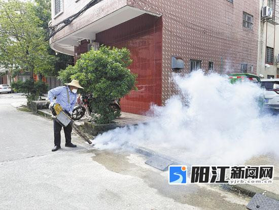 在县城八区街心公园,党员干部对积存垃圾和孳生蚊虫的杂草进行彻底清理。阳西县爱卫部门组同步对网格区垃圾桶周边、下水道口等关键区域进行全面喷洒消毒。
