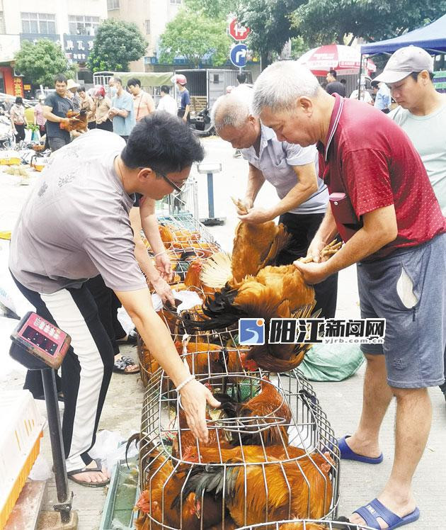 市民趁圩挑选大肥鸡。 夏雨 摄