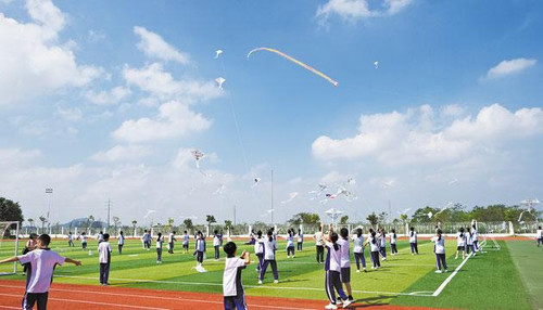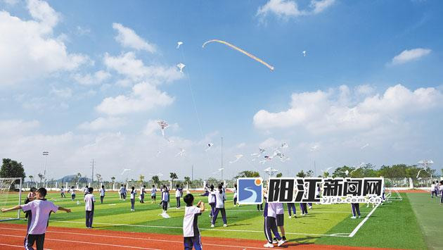 阳江一中初中部学生放飞制作的风筝。 受访单位 供图