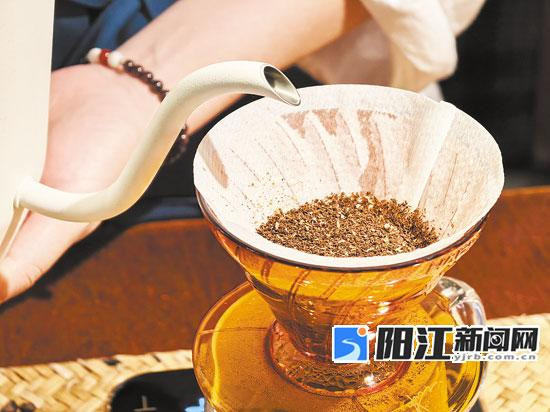 咖啡店的工作人员在制作咖啡。 陈海涛 摄