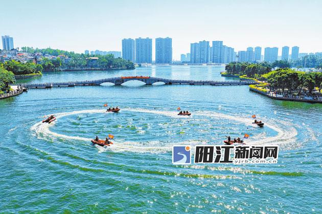 消防员向市民展示水上编队巡逻科目。 阳江日报签约摄影师  关巧明 摄