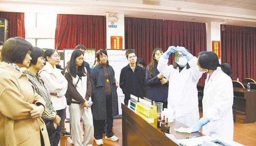 工作人员在进行水质检测小实验。 市水务集团 供图