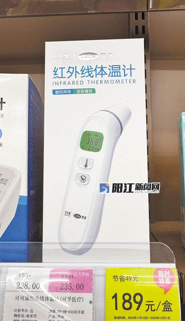 红外线体温计价格相对较高,图中这款特价后也要189元。