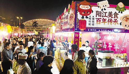 12月12日晚,为期10天的“千年佛山·烟火岭南”美食嘉年华活动在佛山市禅城区文华公园拉开帷幕,来自省内外的经营者在此摆设200多个摊档。在位于显眼位置的“阳江美食 百年传承”摊位区内,江城区经营者钟先生的摊档前人头涌涌,生意火红,6个伙计忙得不亦乐乎。