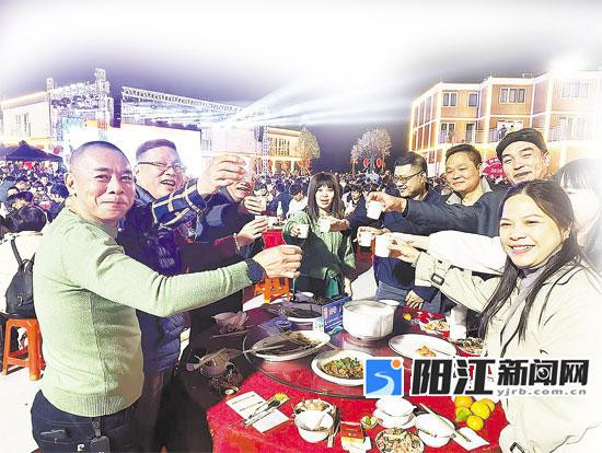 晚上6时许,“蚝”情盛宴正式开启。牛大力猪脚蚝汤、蚝饭、原只炊蚝、清蒸石斑鱼……一道道极具本地风味的佳肴依次上桌,热气蒸腾,蚝香四溢。3000余名市民游客围坐一堂,在欢声笑语中品尝大沟“鲜”味。与此同时,“阳东区公共文化设施联盟文艺汇演”在璀璨灯光下启幕,开场节目《欢乐阳东·粤韵长扬》点燃了观众的热情,古筝合奏《醉美大沟》、歌曲《寻鲜大沟》深情演绎这片土地的丰饶与美丽,魔术《魔幻奇迹》引来阵阵惊叹……歌声、乐声、掌声,汇成了一片欢乐的海洋。