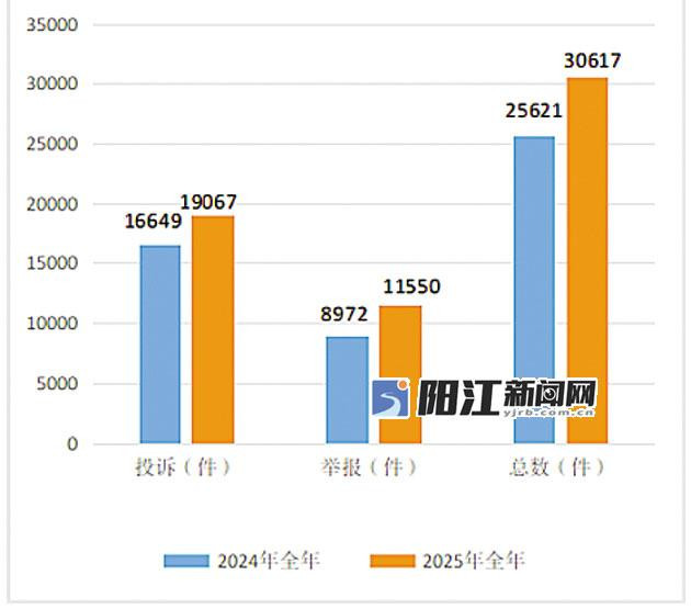 记者近日从市市场监管局获悉,2025年,全市市场监管系统共处理消费者投诉举报30617件,同比增长4996件,增幅19.50%。其中,受理投诉19067件,同比上升14.52%,为消费者挽回经济损失311.43万元;处理举报11550件,同比增加2578件,上升28.73%。市市场监管局提醒,消费者要妥善保管消费凭证,以备日后维权之需。