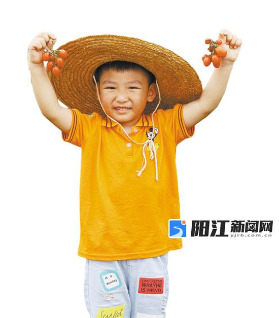小孩子展示刚采下来的圣女果。 关巧明 摄