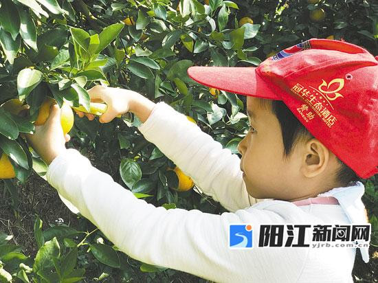 孩子可以在果园里亲手采摘柑子。汝霞 摄