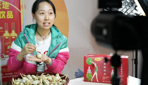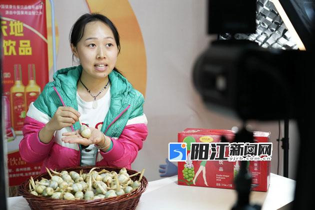 主播正在直播间线上销售慈姑。袁荣泽 摄