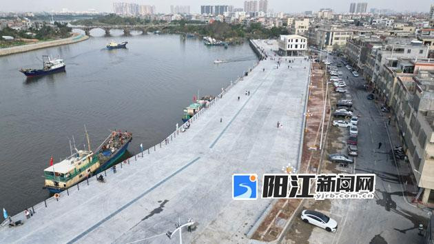 当天上午9时,记者沿着渔港步道行走,只见道路宽阔平坦,周边环境干净整洁。江面上,10余艘渔船缓缓驶出渔港,划开道道银浪,吸引了不少市民群众驻足观赏。江城区渔委会负责人吴沛介绍,本次升级改造工程于2024年8月动工,建设范围北起城西市场边塘厂二桥,南至国营阳江渔船厂洲尾全河段。工程在原有码头基础上扩建形成长345米的现代化渔业码头,设有600HP泊位6个、100HP泊位2个,可满足500余艘渔船停靠、装卸需求。