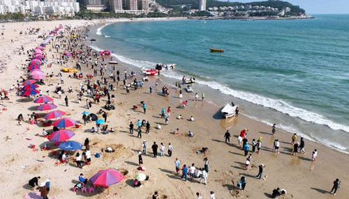 大年初三,市民游客趁着晴好天气来到海边玩沙戏水。陈建华 摄