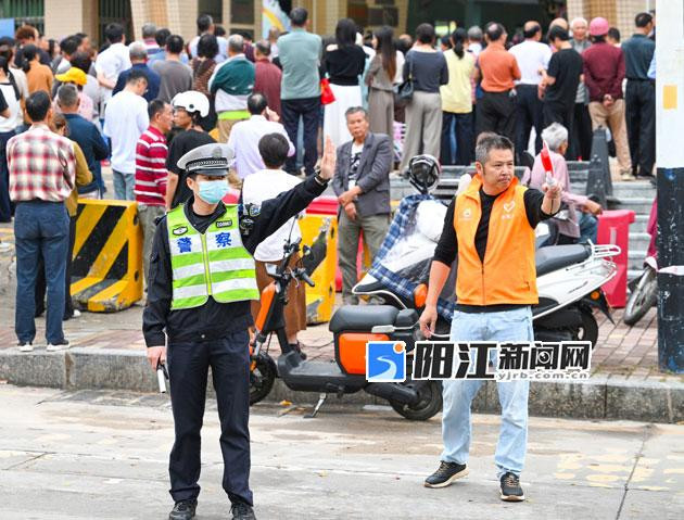 执勤民警和“校家警”护安护畅队员在现场指挥交通,共同维护良好交通环境。梁文栋 摄