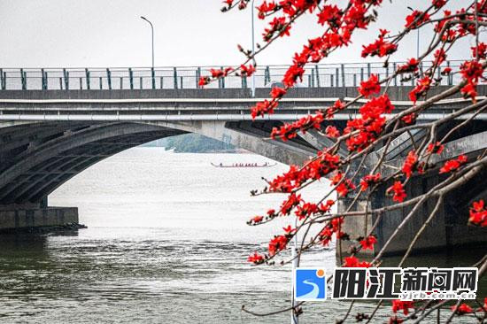 漠阳江边木棉花盛开如火。 袁子当 摄