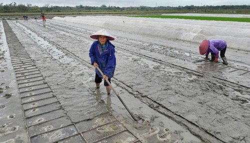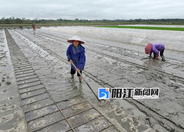 初春时节,阳江市各地抢抓农时,田间地头一派繁忙的春耕景象。3月4日,在江城区白沙街道地美村的连片水田里,农户们正趁着阴雨间隙,有条不紊地开展早稻育秧备耕工作。田间几位农民身着雨衣、头戴斗笠,在泥泞的秧田里分工协作:一位农民手持农具,仔细平整秧床,确保土壤松软均匀;另一位则俯身整理育秧盘,将秧盘精准铺设在湿润的田块中。远处,还有农户在搭建育秧棚,为秧苗提供适宜的生长环境。大家动作娴熟、配合默契,勾勒出一幅生动的春耕画卷。陈建华 摄影报道